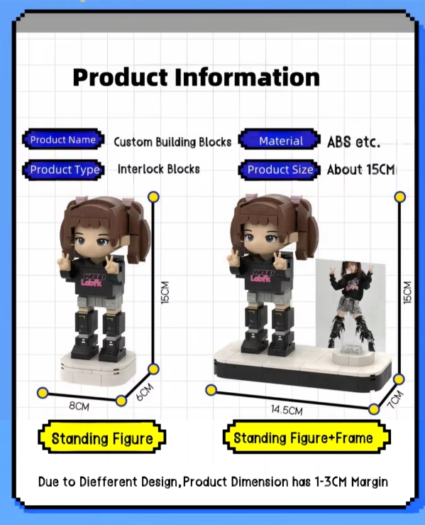Customized DIY Brick Figures – Personalized brick figures are the perfect way to express your personality, we will create a unique building block figure for you based on the photos you upload. When you receive the product, you need to scan the QR code on the packing and assemble it according to the prompts. You can assemble it easily and conveniently. Personalized Brick figures make a unique and fun home decor gift that can be paired with any Brick set in your home.